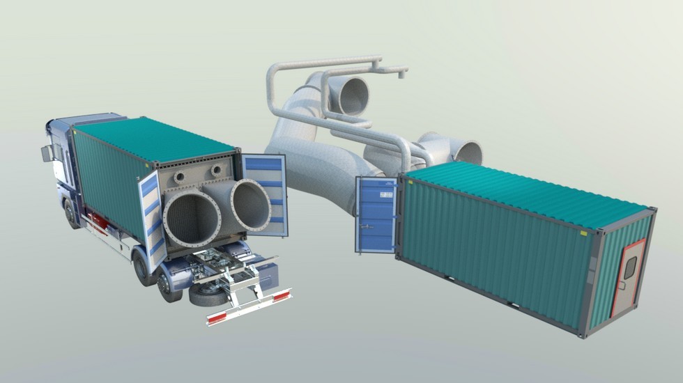 Rys. 2. Projekt wymiennika wraz ze sterownią zabudowany w typowym kontenerze