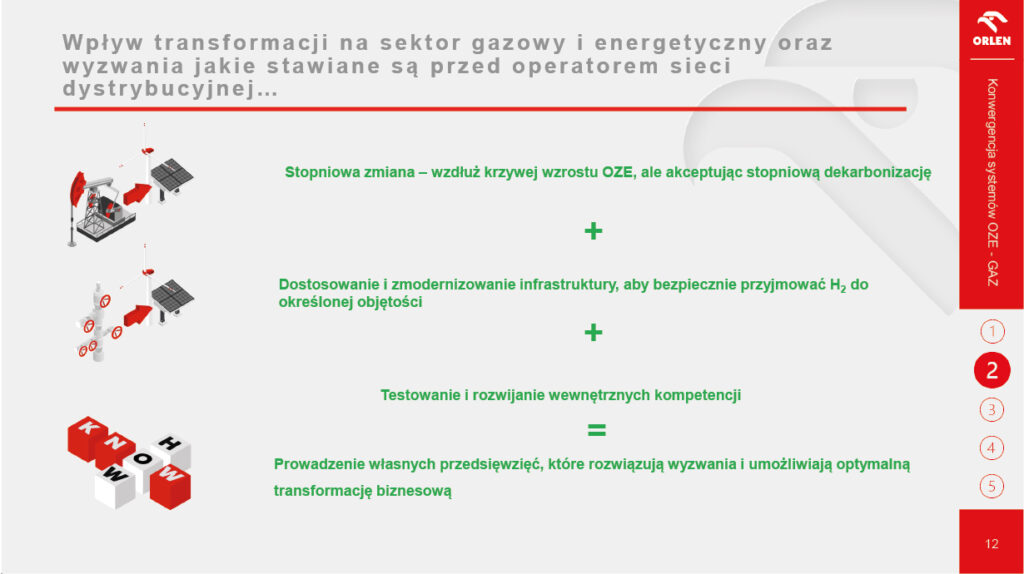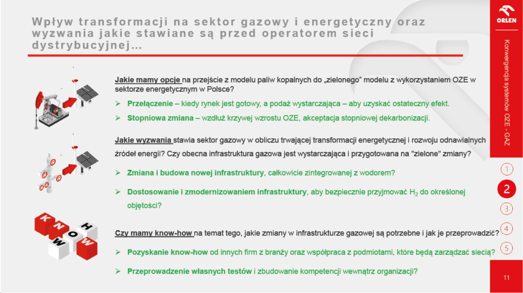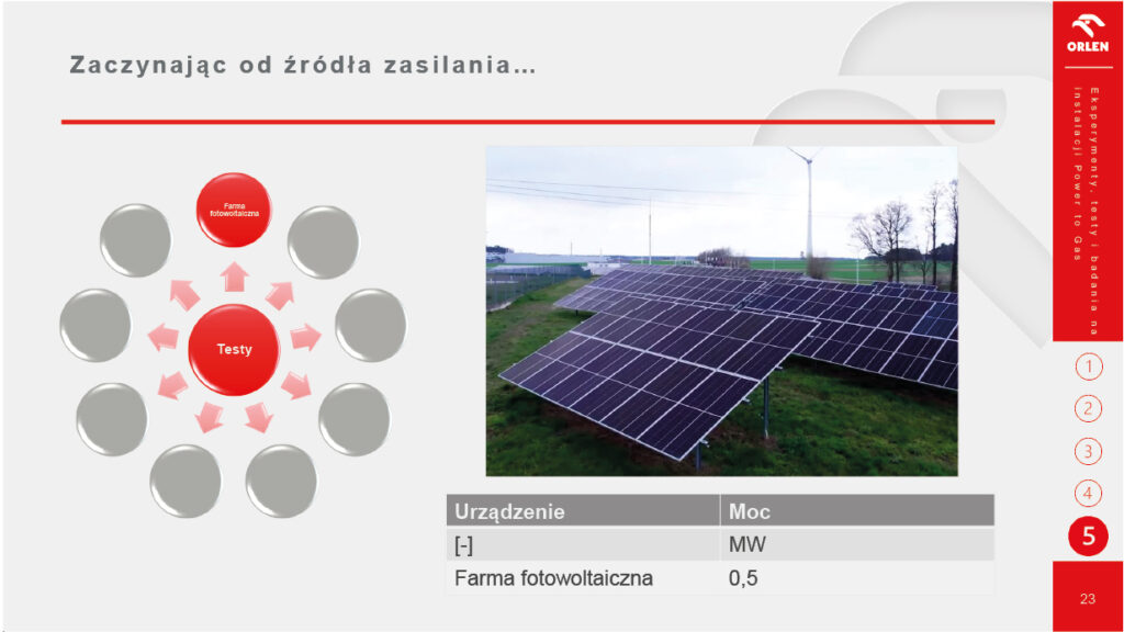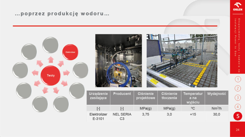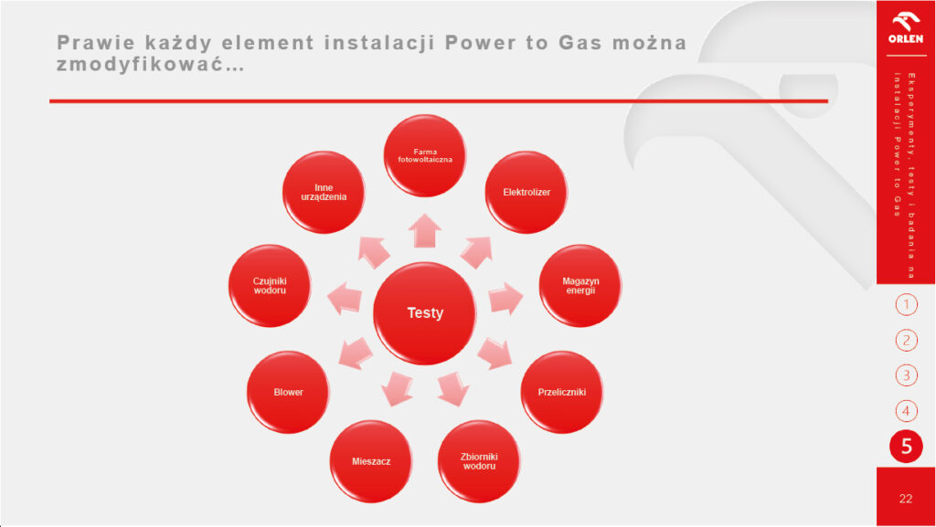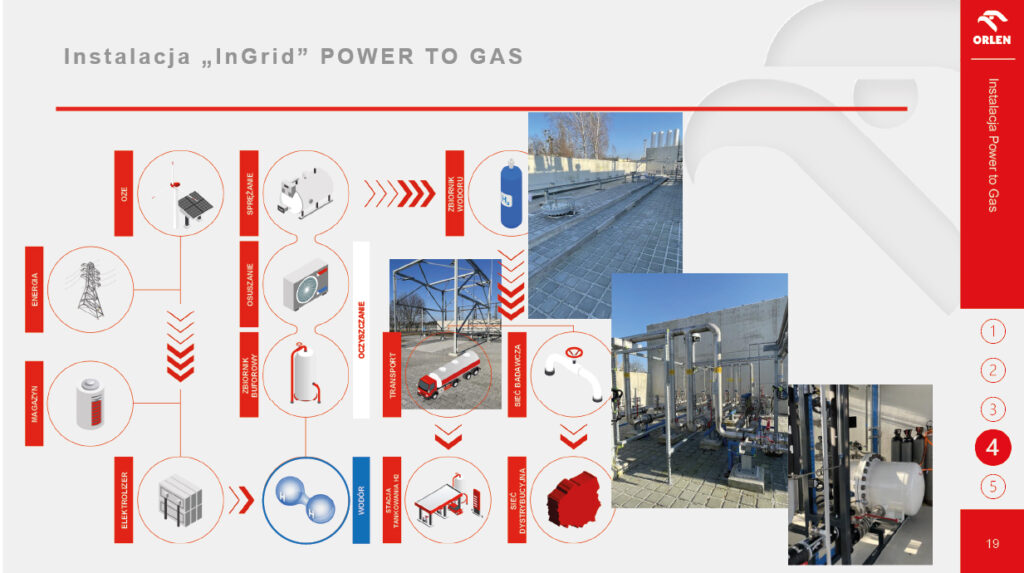 Oznacza to, że nie można w Polsce oraz Europie Środkowo-Wschodniej wdrażać zmian w taki sam sposób, jaki jest, czy może być stosowany w innych europejskich krajach. Mając to na uwadze oraz pamiętając o generalnych trendach, którym podlegają modele rynku energii (jak konwergencja systemów gazowego i elektroenergetycznego, decentralizacja i wielokierunkowość przepływu energii), Grupa ORLEN podjęła wiele inicjatyw rozwojowych, innowacyjnych i badawczo-rozwojowych. Jedną z nich jest zbudowanie i uruchomienie (w ramach projektu InGrid ) instalacji „Power to Gas”. Obiekt ten stanowi unikalne w skali kraju laboratorium badawcze i testowe, umożliwiające prowadzenie eksperymentów z udziałem wodoru jako nośnika energii oraz jego integracją z istniejącą infrastrukturą gazową.