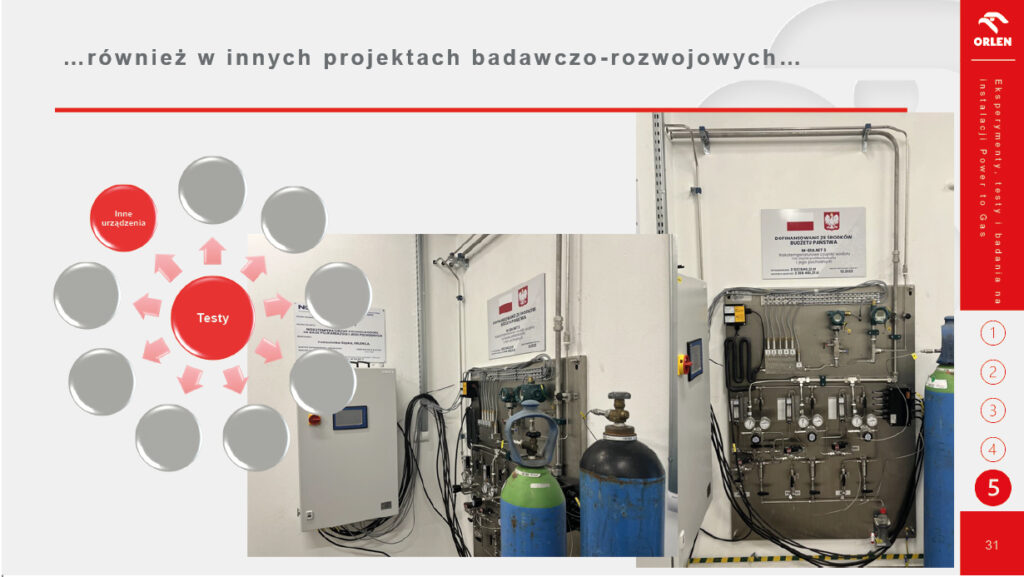 Wiele z wcześniej zasygnalizowanych wyzwań i zadań wypełniających przejęte ambicje biznesowe i przewidywane zdarzenia rynkowe, ORLEN zdecydował się zaadresować w ramach badawczo-rozwojowej i testowo-eksperymentalnej instalacji Power to Gas, zbudowanej i uruchomionej na terenie Oddziału Odolanów (odazotowni gazu ziemnego).