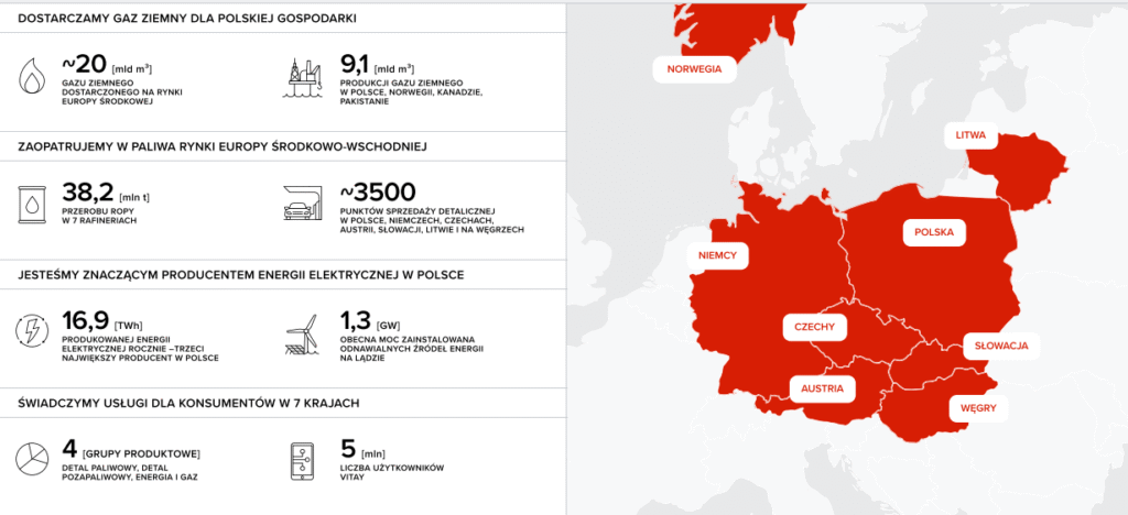 – ponad 38 mln ton przerobionej ropy naftowej oraz sieć około 3 500 stacji benzynowych w Europie,