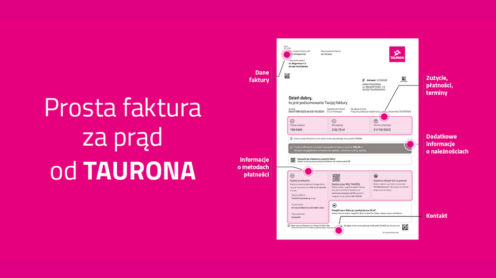 Już 4,6 mln gospodarstw domowych otrzymało od Taurona swoją fakturę za prąd z czytelnym podsumowaniem najważniejszych informacji. Całkiem nowa, prosta faktura trafi do pierwszych klientów jeszcze w tym roku. Aby wesprzeć gospodarstwa domowe w wyborze optymalnych rozwiązań dla tańszego prądu i pomóc klientom lepiej zrozumieć rachunki za energię elektryczną, Tauron ruszył z kolejnym działaniami informacyjnymi. Pomocny ebook i materiały video są dostępne m.in. na stronie lepiej.tauron.pl