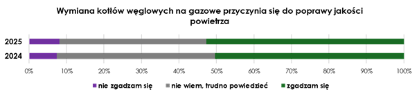 Z 7. edycji badania EKObarometr zrealizowanego przez agencję SW Research wynika, że 52,7% Polaków uważa, że wymiana kotłów węglowych na kotły zasilane gazem przyczynia się do poprawy jakości powietrza i ograniczenia smogu[1]. Aż 43,6% Polaków wskazuje, że ten sam efekt ma wykorzystanie autogazu w samochodach osobowych, a 51,5% Polaków chciałoby, aby kotły gazowe były nadal finansowane z programu „Czyste Powietrze” (przy czym 6,9% jest przeciwnego zdania). Aż 74% Polaków jest zdania, że europejska polityka klimatyczna nie powinna być wstrzymywana. Polska Organizacja Gazu Płynnego (POGP) była wśród partnerów badania EKObarometr 2025.