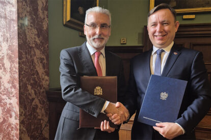 Prezes Państwowej Agencji Atomistyki Andrzej Głowacki i Szef hiszpańskiego dozoru jądrowego Juan Carlos Lentijo podpisali porozumienie o współpracy między...